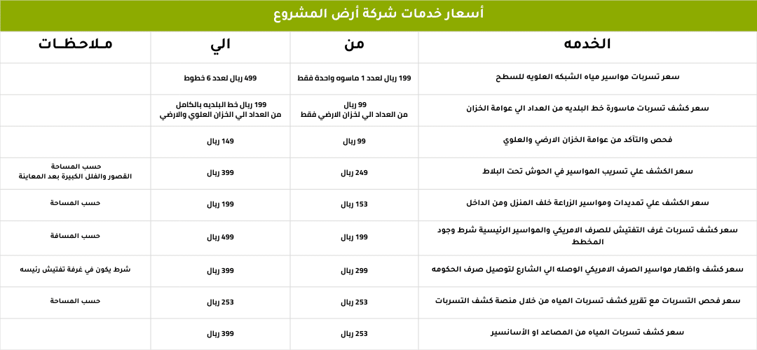 مؤسسة أرض المشروع افضل اسعار كشف تسربات المياه بأحدث الأجهزة وبدون تكسير